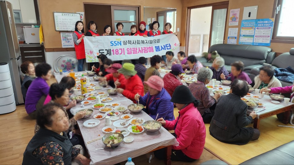 회원들이 모은 성금으로 흥전1리 경로당 점심식사 대접 봉사활동