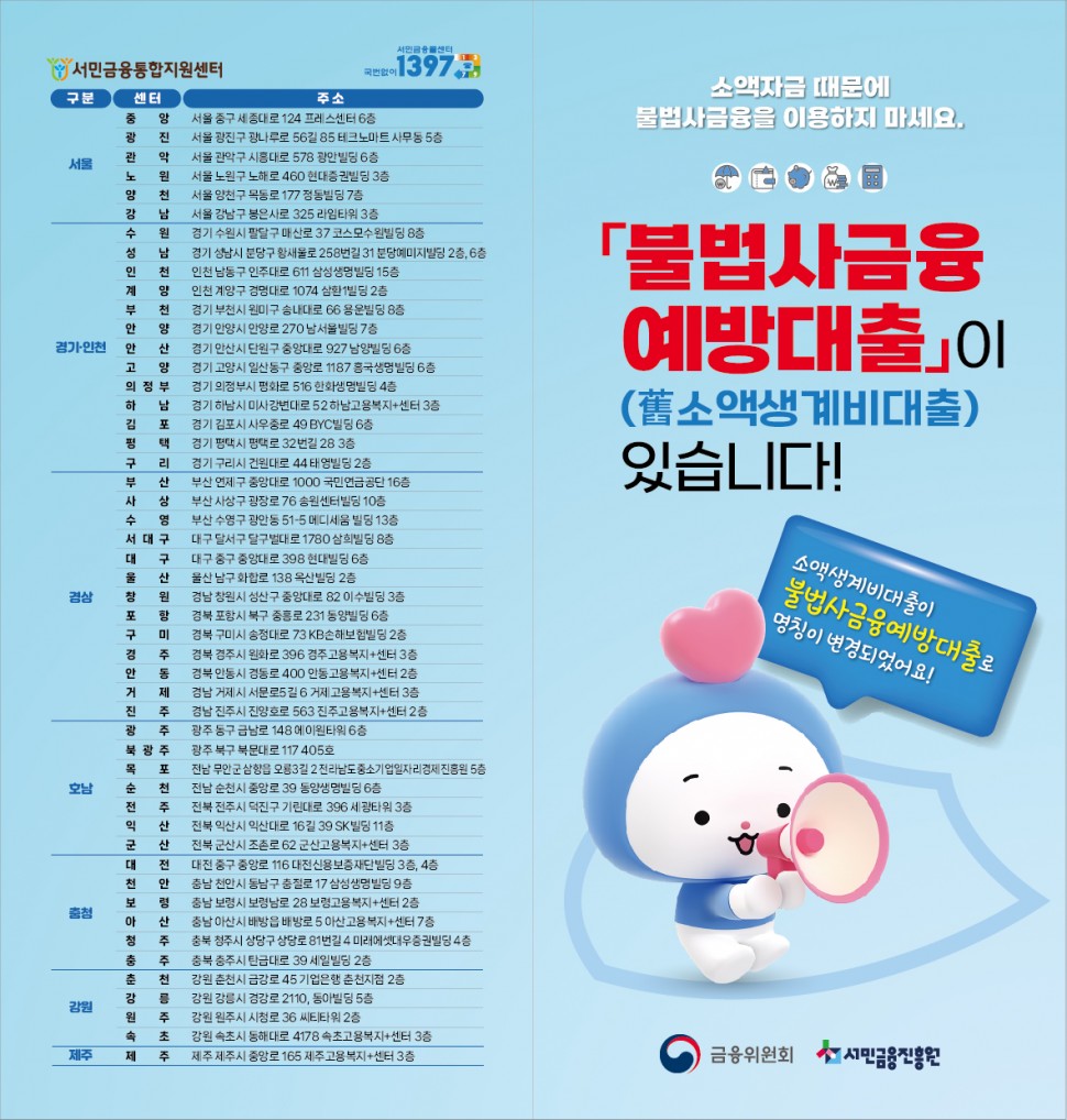 붙임1 서민금융통합지원센터 주소록 참고하여 인근 서민금융통합지원센터로