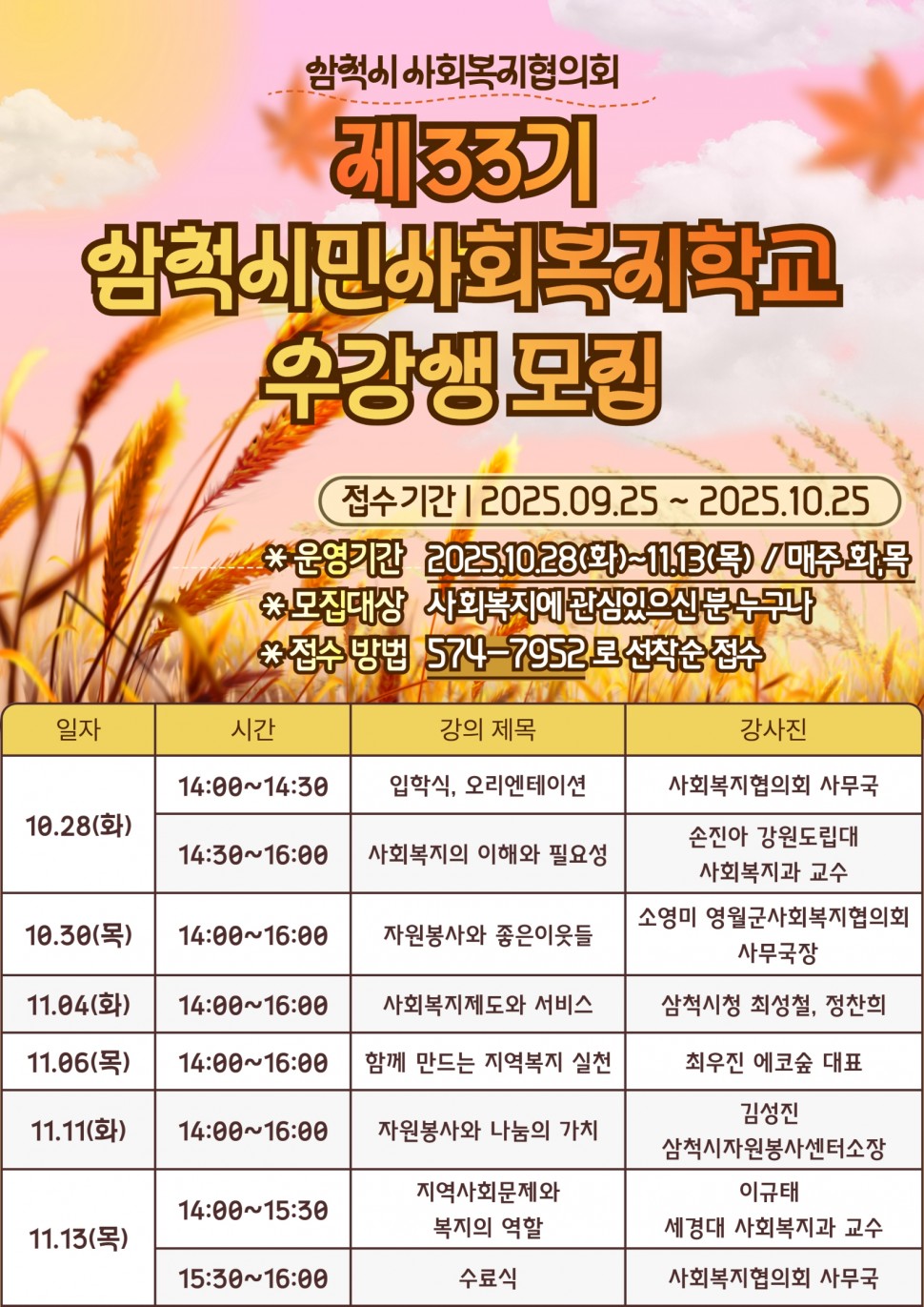 ▶제 33기 삼척시민사회복지학교 수강생 모집◀